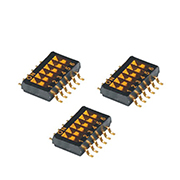 指撥開關很多款型號,按照撥動的方式來分有平撥跟側撥之分,按照腳間距有2.54mm和1.27mm腳間距之分,按照顏色有黑色,紅色,藍色的區別。根據狀態來說還有兩態跟三態之分。根據位數來說正常是都是1-10位、12位等11個位數。其實細分下來,還有很多種。廣泛使用于數據處理、通信、遙控和防盜自動警鈴系統等需要手動程式編制的產品上。
