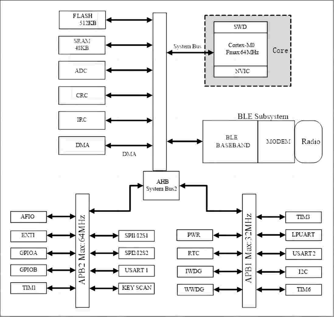 型號 藍(lán)牙協(xié)議 Flash(KB) SRAM(KB) CPU頻率 電壓 RTC SPI I2S I2C USART LPUART GPIO AMIC DMA 10位ADC CRC 封裝 PDF下載