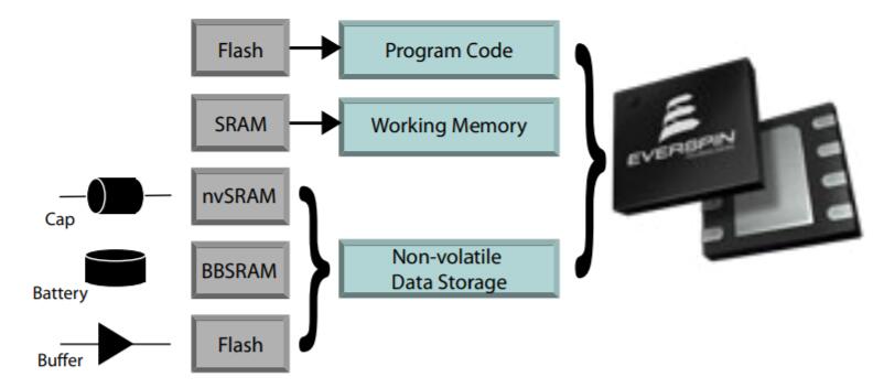 MRAM像SRAM一樣是快速寫(xiě)入的,而像Flash一樣也是非易失性的,但是不需要頁(yè)面擦除或長(zhǎng)寫(xiě)入周期。事件數(shù)據(jù)可以以總線速度保存到MRAM,并且即使意外斷電或掉電也可以保持持久性。