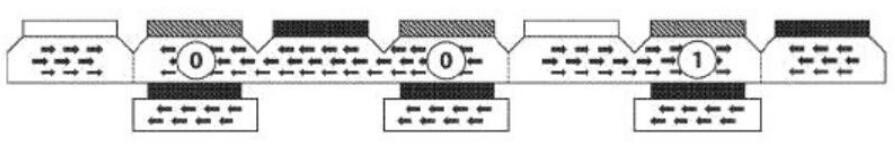 為了寫入單個(gè)位,電流通過存儲(chǔ)線,并且多鐵性元件和自由層的相互作用確定層之間的反平行極性為“ 1”(高電阻),層之間的平行極性為“ 0” (低電阻)。然后,通過減小存儲(chǔ)線和多鐵性元件之間的交換偏壓來更改存儲(chǔ)域的磁化強(qiáng)度(請參見上圖)。存儲(chǔ)器域是可獨(dú)立寫的,只需要一個(gè)電流輸入即可存儲(chǔ)數(shù)據(jù)。這大大降低了能耗和寫入周期所需的時(shí)間,從而提高了成本和性能效率。