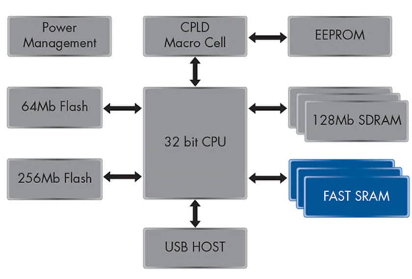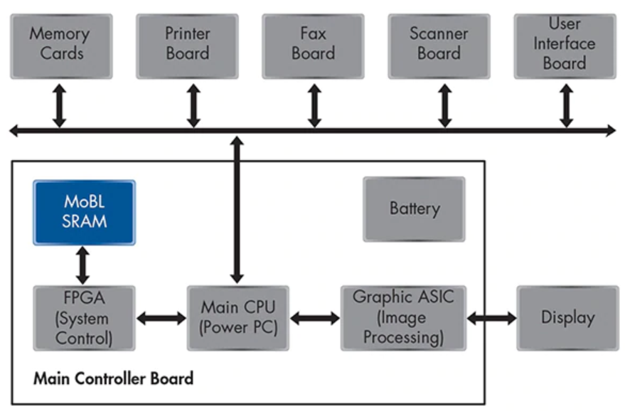 多功能打印機(MFP)是MoBL®SRAM器件的主要應用領(lǐng)域。多種數(shù)據(jù)永久或臨時存儲在MFP內(nèi)存中。硬盤驅(qū)動器(HDD)或閃存驅(qū)動器存儲各種類型的用戶信息,而用戶工具設置,網(wǎng)絡設置和配置數(shù)據(jù)則存儲在專用的MoBL®SRAM中。SRAM還用于作業(yè)狀態(tài)和字體表。數(shù)據(jù)對于設備的運行至關(guān)重要,并通過電池的電源循環(huán)進行保護。因此,MFP設計需要具有高可靠性和低錯誤率的